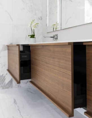 We offer custom-crafted bathroom furniture with an elegant and timeless ‘Made in Italy’ design. Our Tailormade Stocco wall-hung vanities and linen closets feature a sleek aesthetic and are designed with ergonomic comfort in mind. Every piece is crafted with attention to detail and care to ensure a high-quality product. Contact us to learn more about our range of existing models, configurations and finish selections, as well as custom works.
