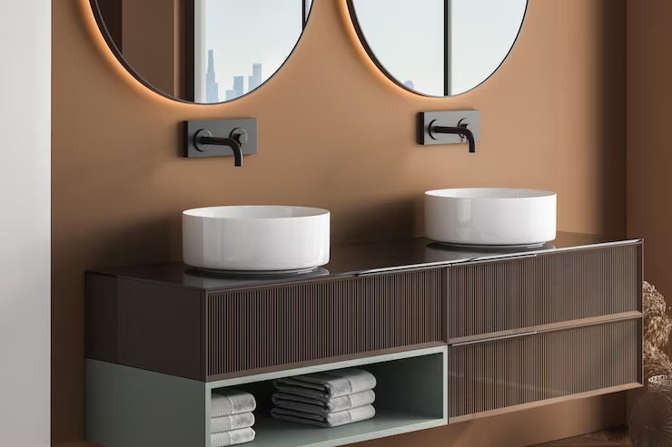 Discover bespoke Italian-crafted bathroom furniture defined by clean architectural lines and timeless design. Our wall-mounted vanities and complementary storage units are developed with ergonomic precision and refined detailing to ensure both comfort and longevity. Each piece is produced using premium materials and meticulous craftsmanship. Contact our team to explore available collections, configuration options, finishes, and tailored solutions.